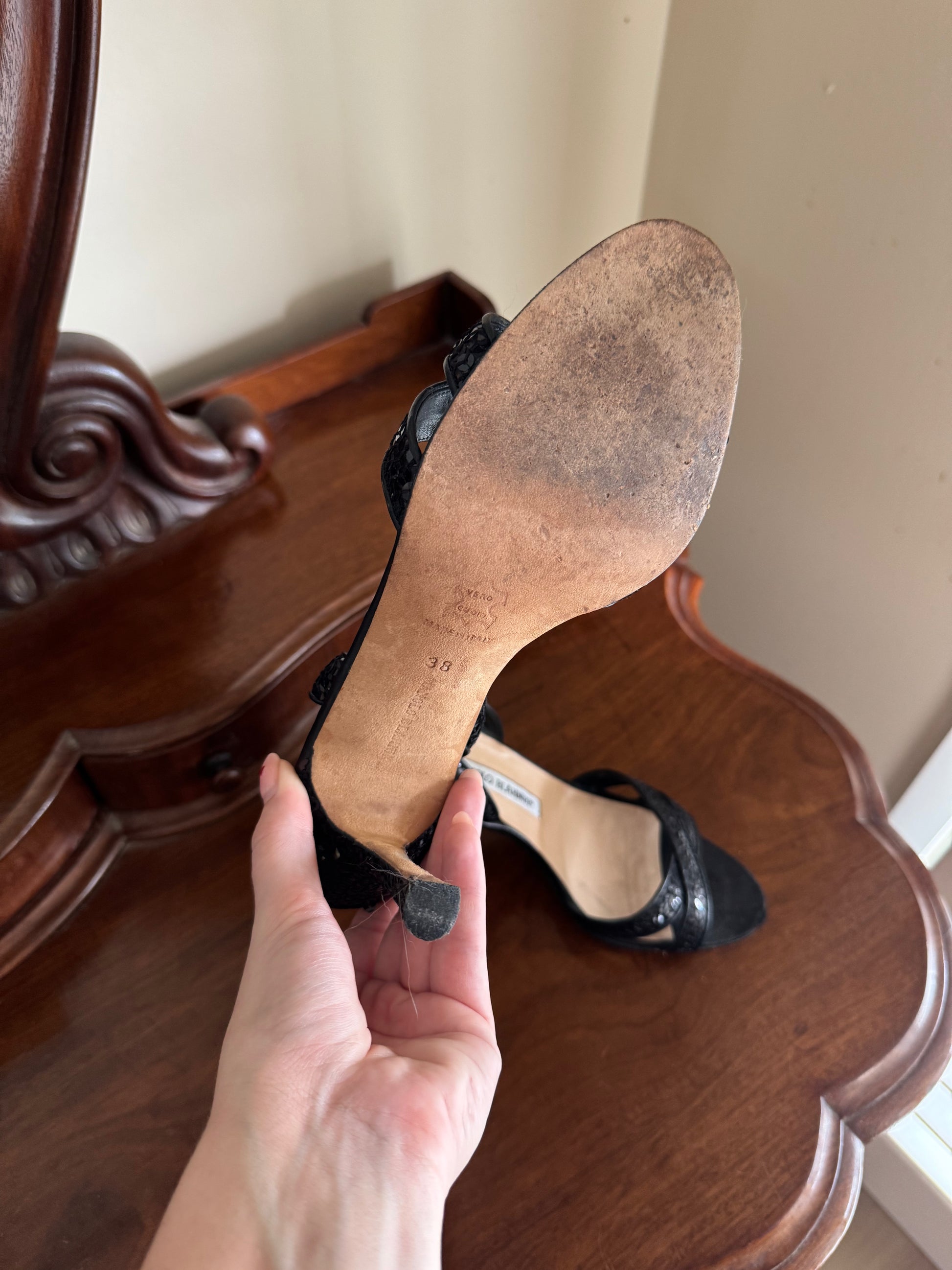 MANOLO BLAHNIK CALLASLI SEQUIN SANDALS SIZE 38