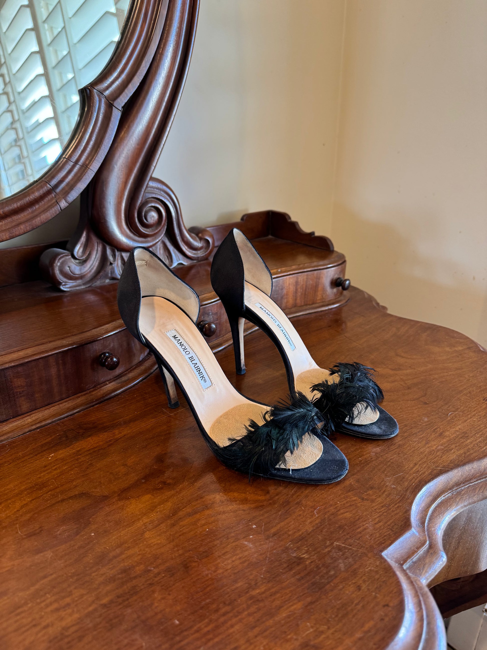 MANOLO BLAHNIK FEATHER PUMPS SIZE 38